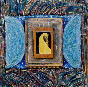 ©Emre. Acrylic on particleboard+wood, paper and multimedia20x20 (50.8x50.8 cm)