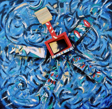 ©Emre. Acrylic on particleboard+wood and multimedia20x20 (50.8x50.8 cm)